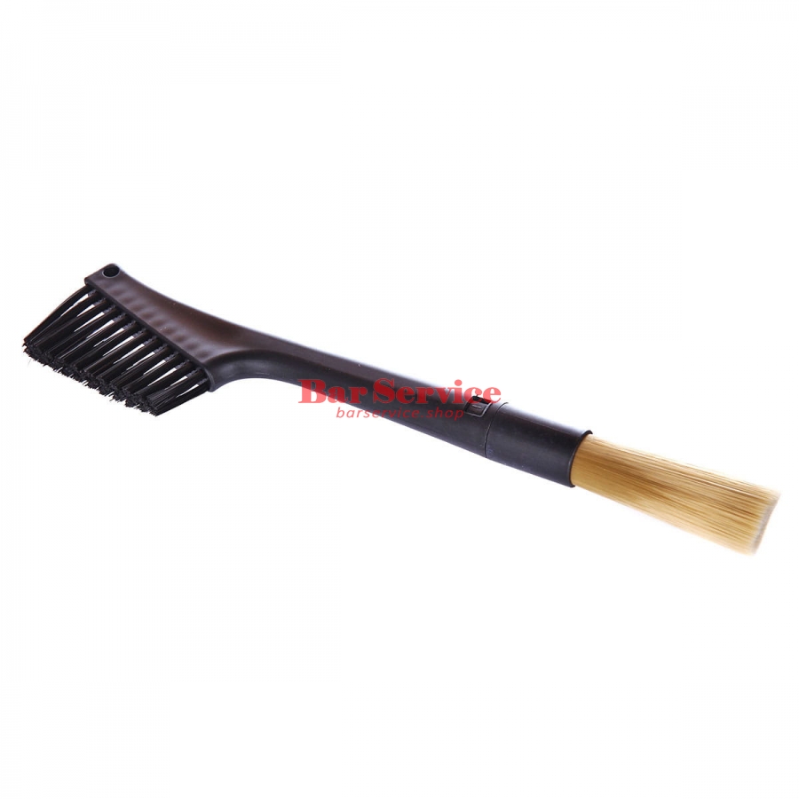 Двусторонняя щетка для механической чистки кофемолок и рабочей поверхности. Идеальный и эффективный инструмент для поддержания чистоты вашего оборудования. нижняя часть щётки – кисть со сменным наконечником - используется для чистки кофемолок и их труднодоступных мест; Выполнена из натуральной щетины кабана, жесткая и гибкая, не деформируется, устойчива к влаге и не подвержена воздействию холода и тепла; плоская часть щётки может очистить большую площадь рабочей поверхности стола; Эта часть щётки изготовлена из жесткой нейлоновой щетины; длинная ручка удобная для захвата; отверстие для шнурка