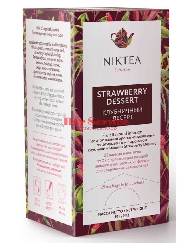 Каталог/Чай 3442 Напиток чайный Клубничный Десерт, с ароматом клубники и малины, пакетированный, 500х2г