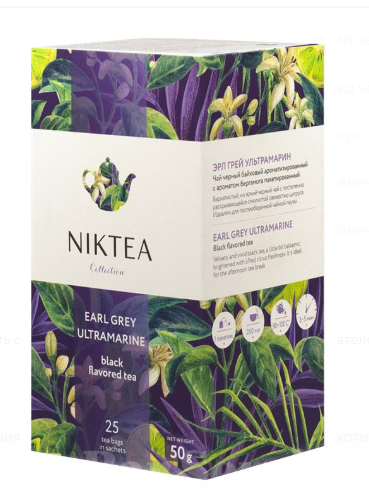 Niktea NR02 Эрл Грей Ультрамарин черный пакетированный байховый чай с ярким вкусом цитрусовой свежести и ароматом бергамота. Используется в качестве дневной чайной церемонии. Индивидуальный пакетик содержит 2 грамма чая. В цветной картонной упаковке 25 пакетов.